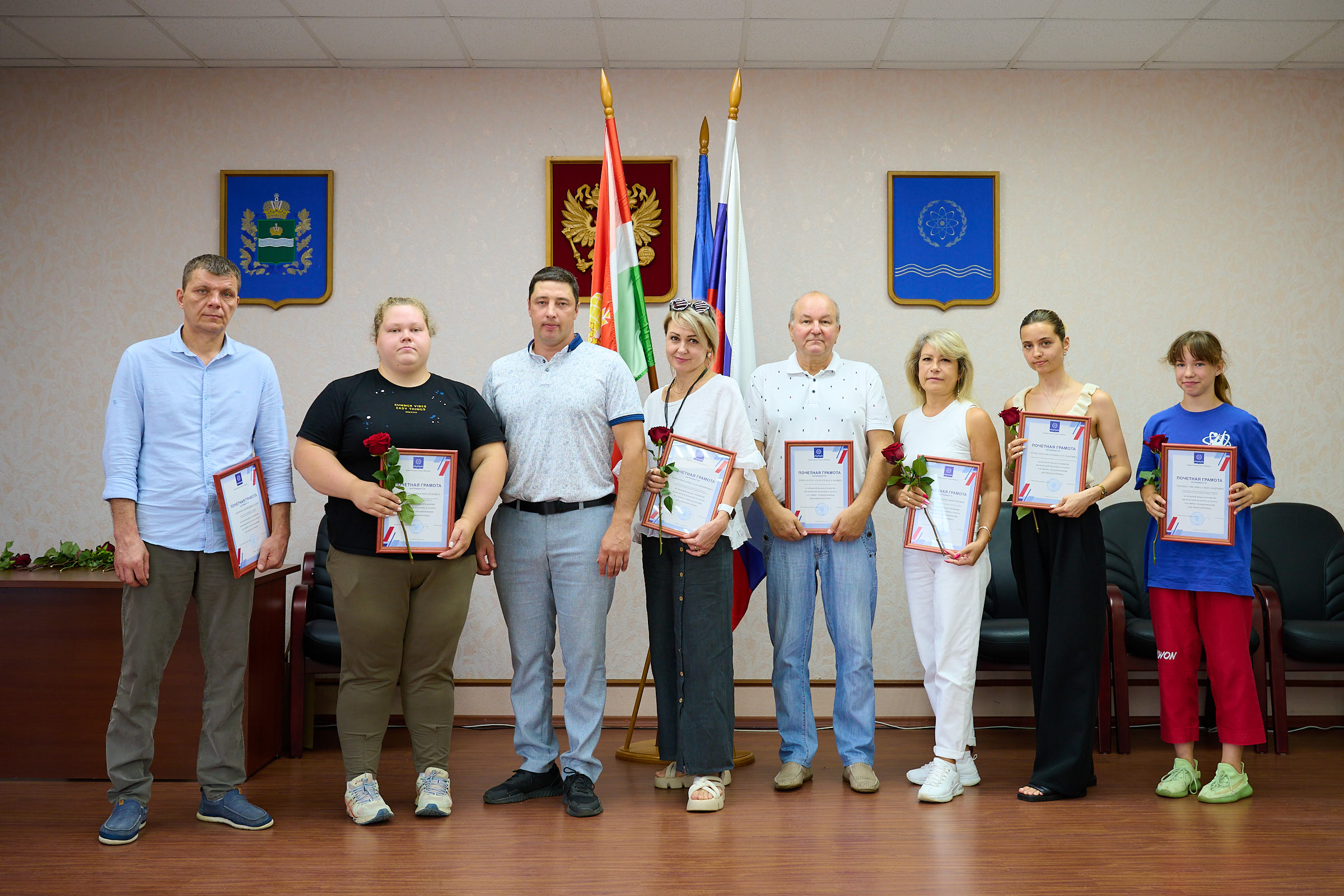 16 июля в Администрации города прошла торжественная церемония вручения почётных грамот лицам, внесшим значительный вклад в спортивную жизнь Обнинска и в связи с празднованием Всероссийского Дня физкультурника.