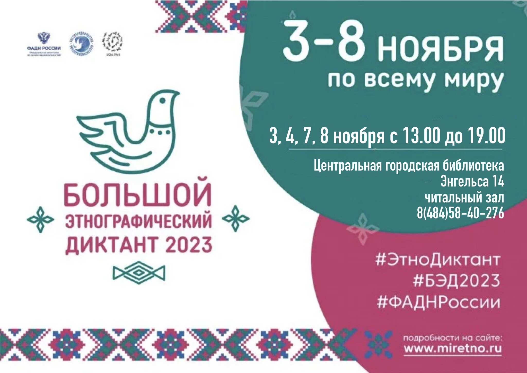 В Обнинске площадкой для проведения диктанта выступит Центральная городская библиотека (Энгельса, 14). В период с 3 по 8 ноября с 13.00 до 19.00 в читальном зале каждый может попробовать свои силы и стать участником «Большого этнографического диктанта».