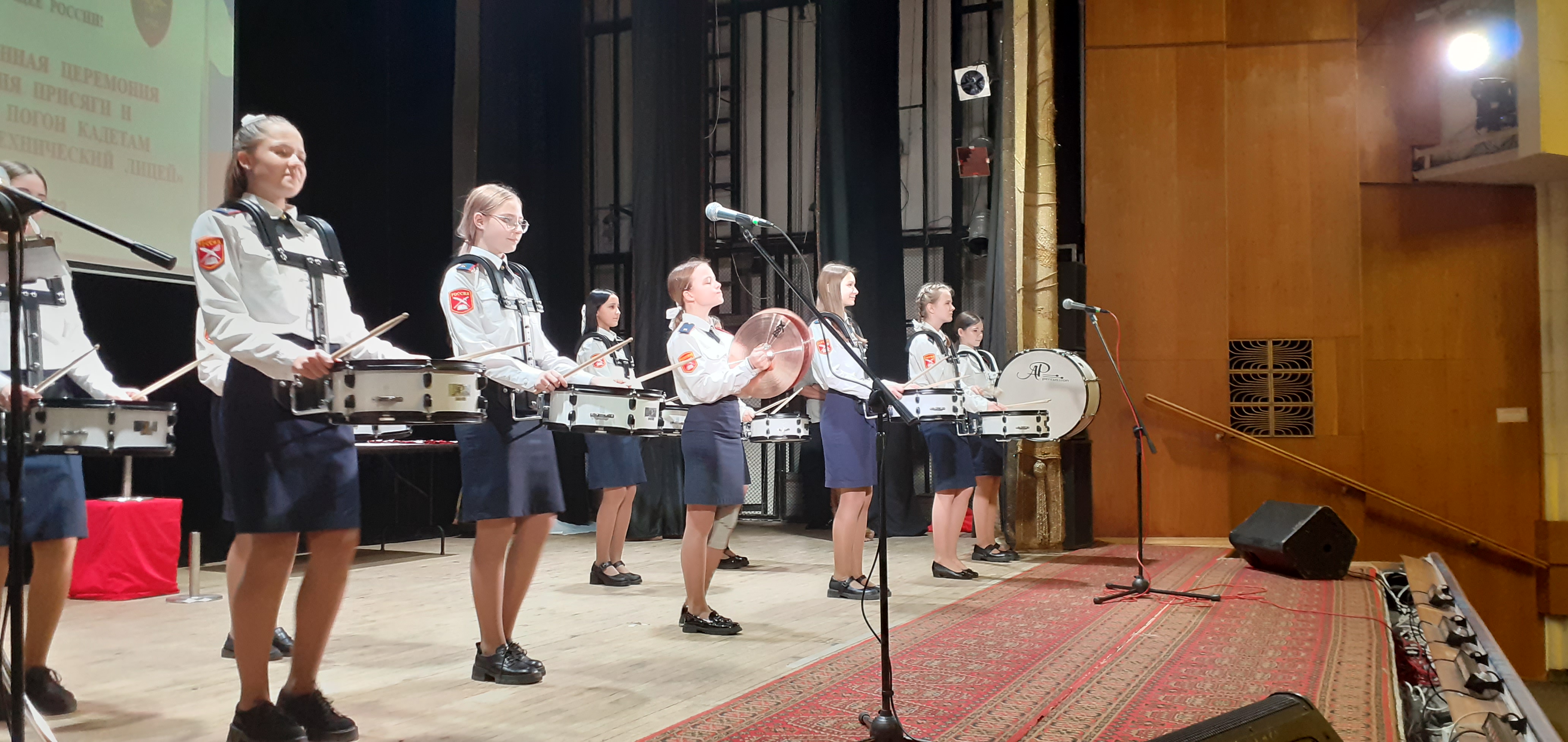 Под аплодисменты почетных гостей, педагогов, учащихся старших кадетских классов и родителей детей юные лицеисты выходили на сцену для принятия присяги и вручения погон.