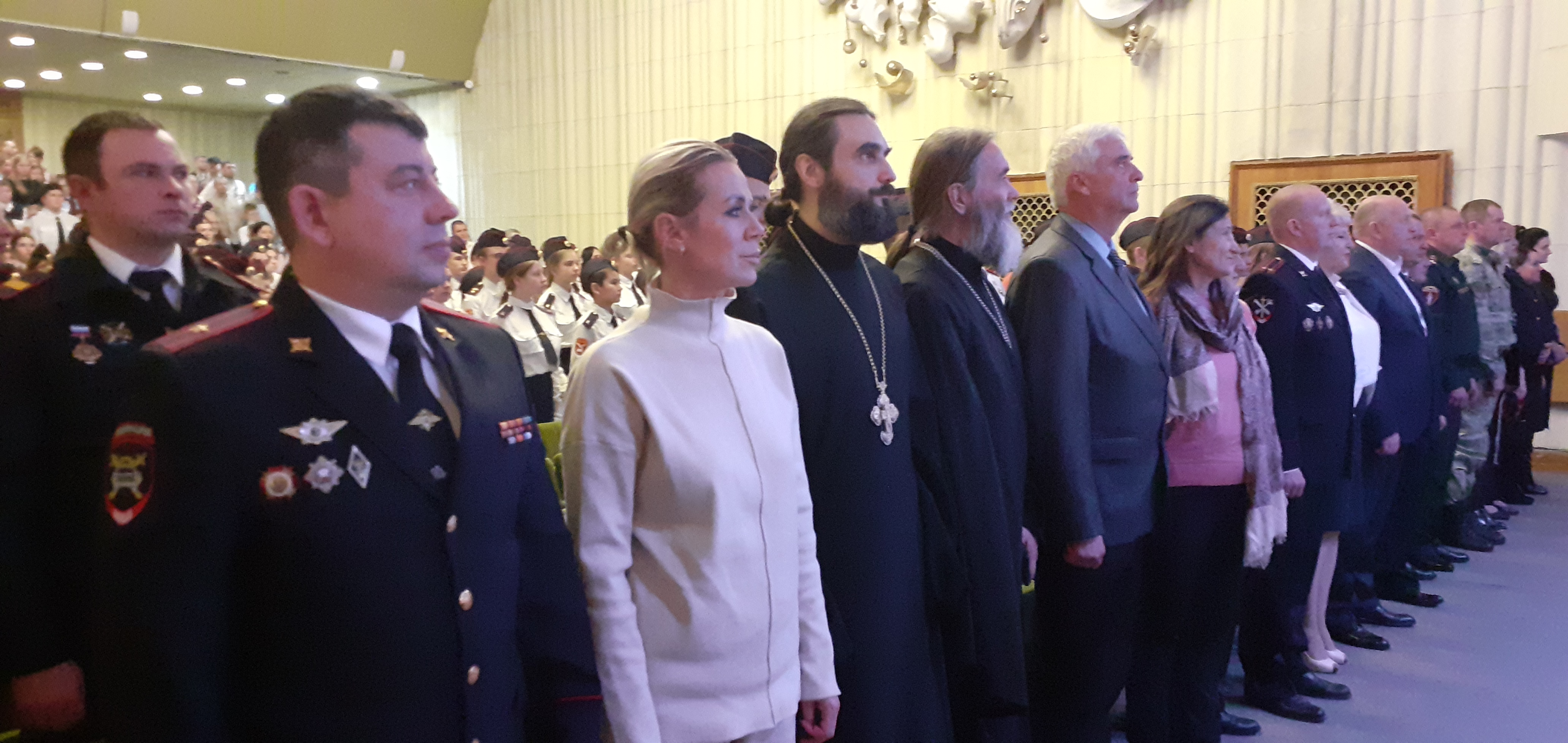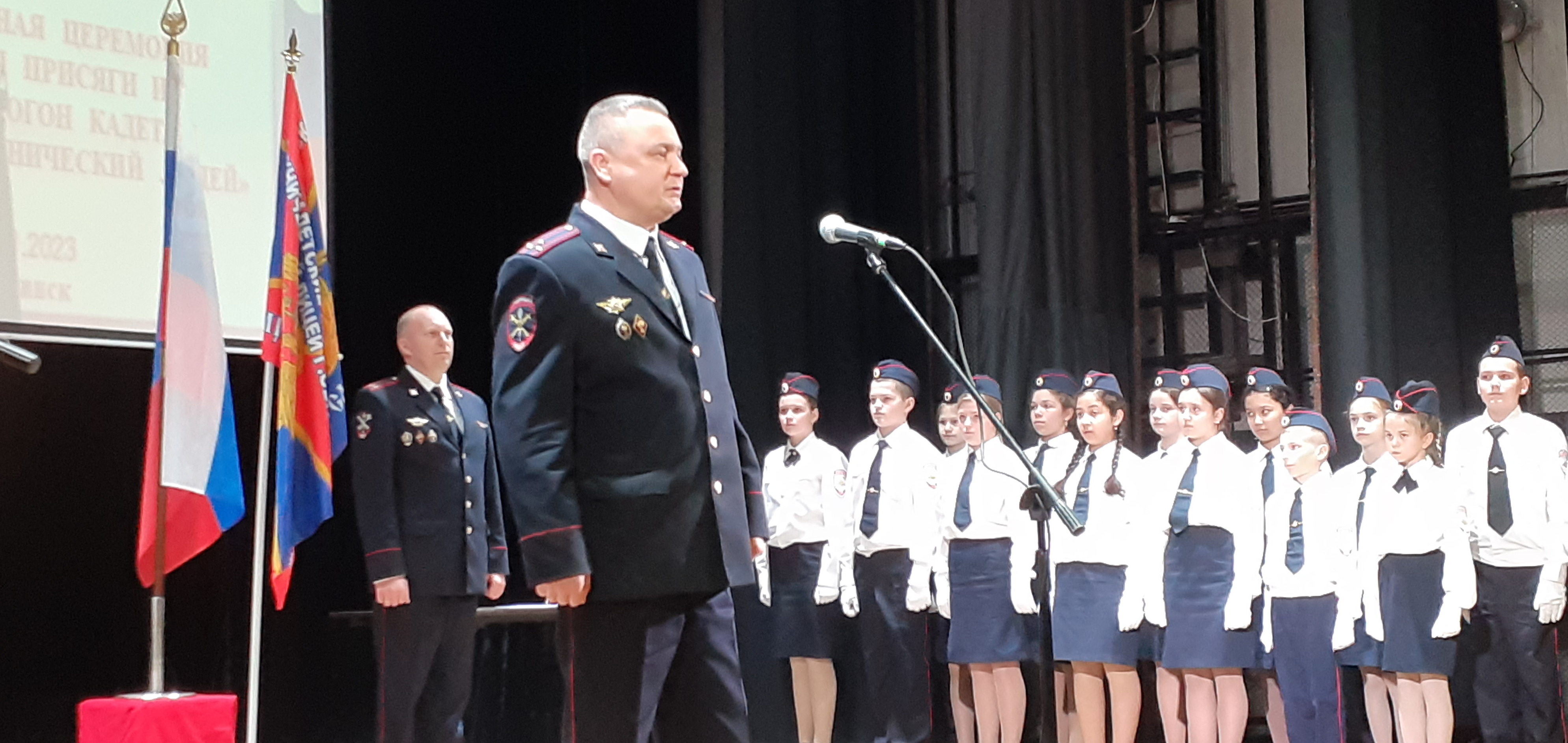 Руководство полиции, представители Общественного совета ОМВД России по г. Обнинск, силовых структур и ведомств, духовенства и общественных организаций приняли участие в торжественной церемонии принятия присяги и вручения погон кадетам в Доме культуры ФЭИ.