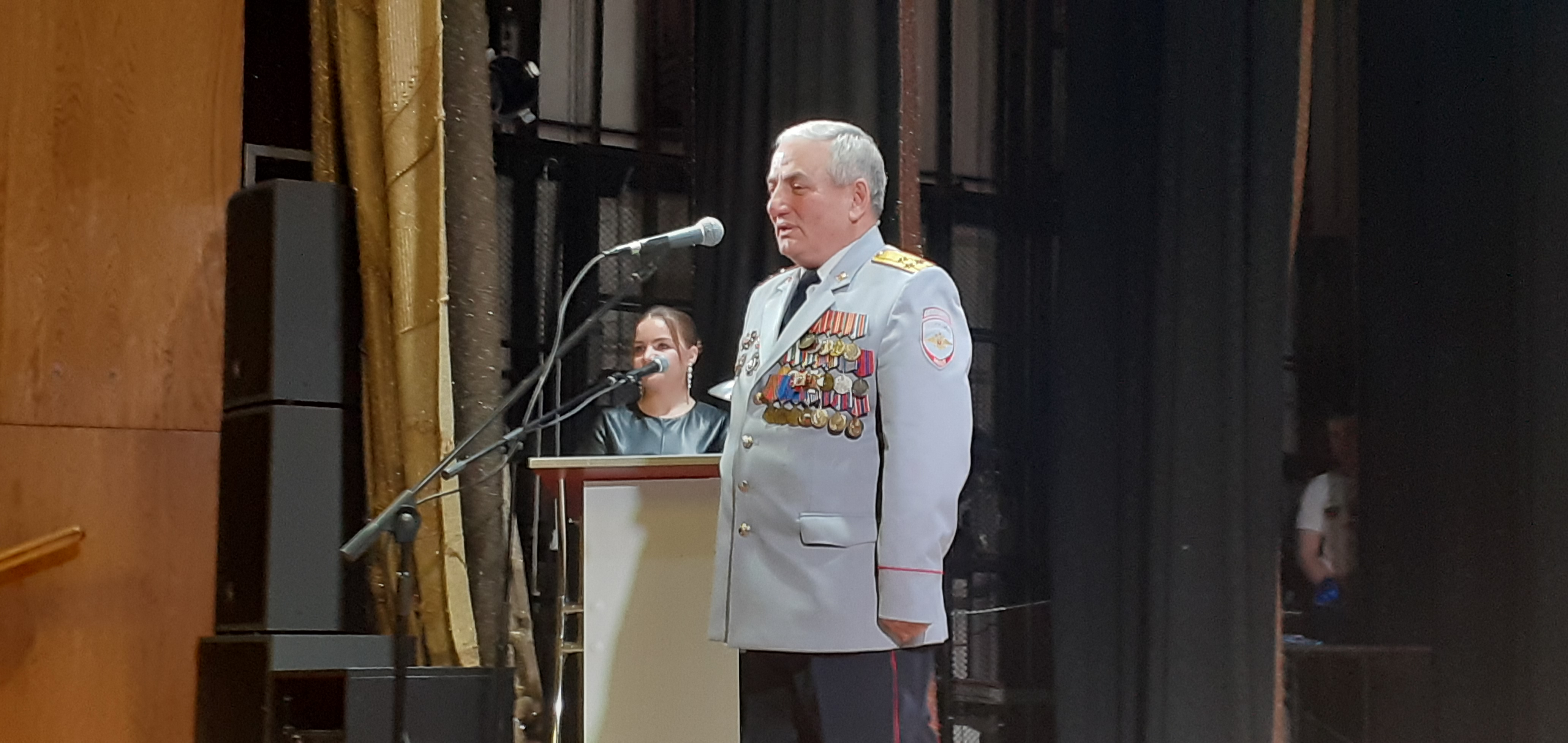 В праздничный день напутственные слова со сцены прозвучали от представителей силовых структур и ведомств, а также от общественных ветеранских организаций как в адрес будущих полицейских, так и тех, кто уже ежедневно несет службу в органах внутренних дел.