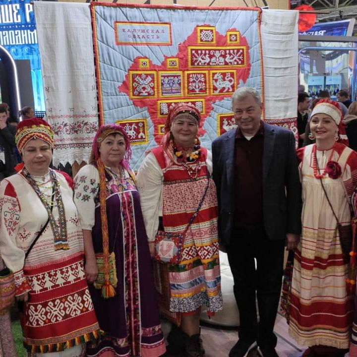 12 ноября обнинские мастерицы представили вышитую карту Калужского региона и провели мастер-класс по уникальной калужской вышивке цветной перевитью и ткачеству на Международной выставке-форуме «Россия» на ВДНХ.