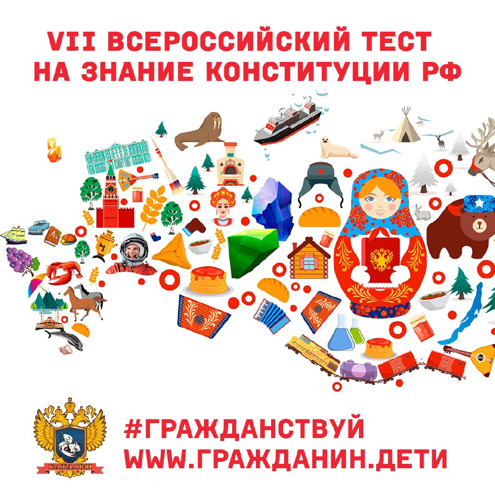 В тесте на знание Конституции нашей страны могут принять участие все желающие. Подробная информация об условиях и правилах участия - на сайте: https://гражданин.дети,а также в группе ВКонтакте: https://vk.com/citizz
