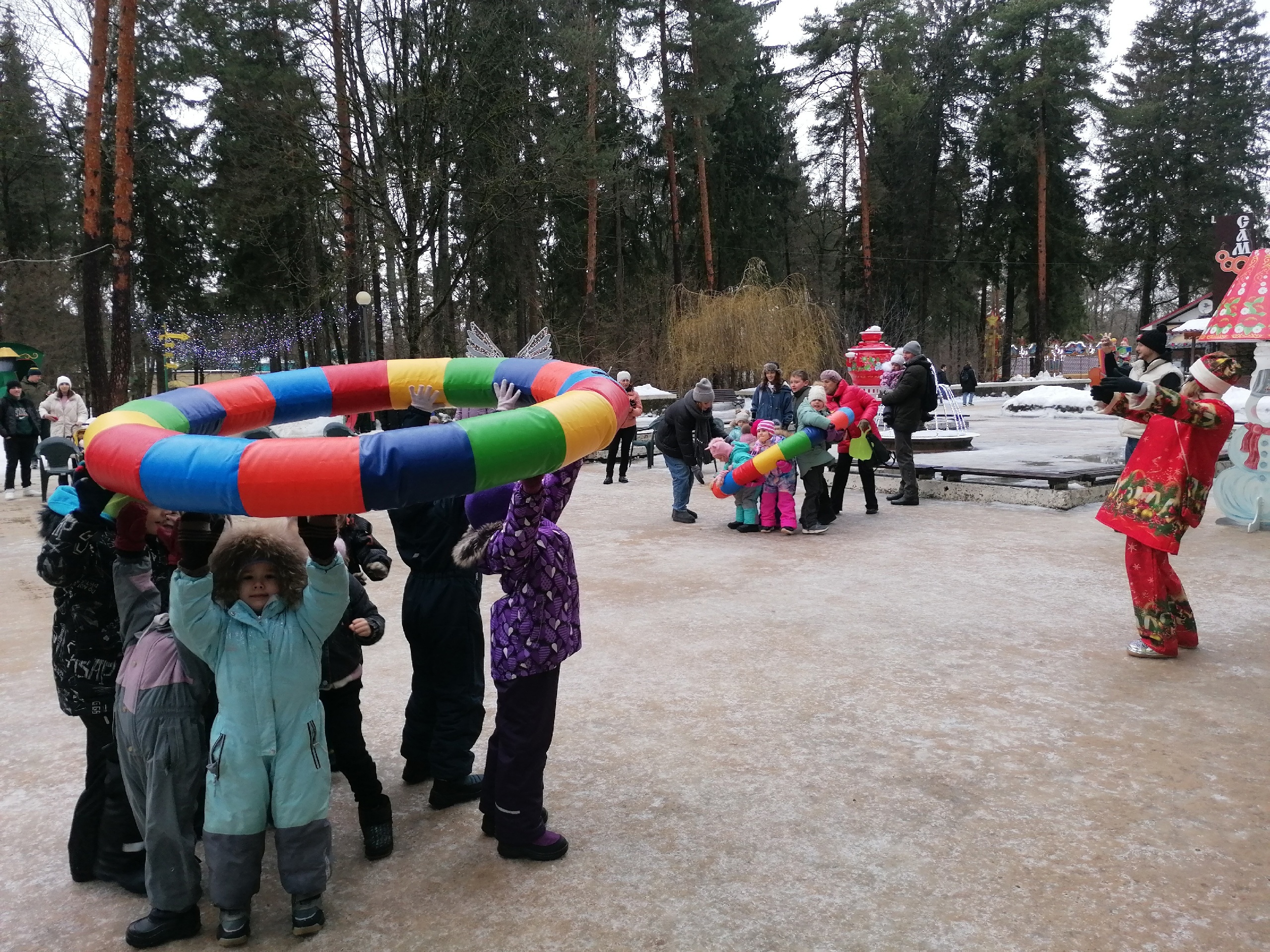 Ух, и весело было в парке в первые январские дни. Семейные эстафеты и весёлые конкурсы растопили сердца даже самых больших скептиков. Красная Шапочка и Северный Олень придумали много испытаний для гостей парка. Все участники праздника уходили с подарками.