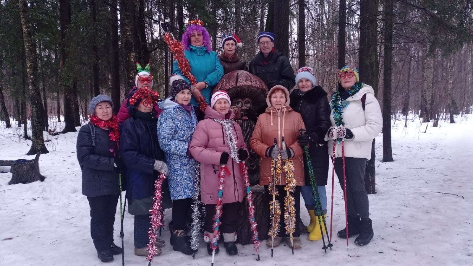 30 декабря традиционным маскарадным маршем прошла группа северной ходьбы "На дорожках Гурьяновского леса". Все участники занятия постарались и придумали себе костюмы.