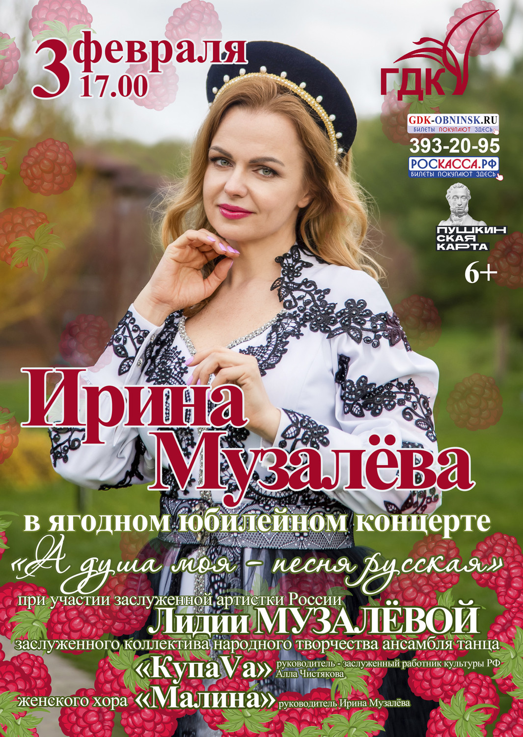 3 февраля в 17:00 - Юбилейный концерт Ирины Музалевой «А душа моя – песня русская» (6+).