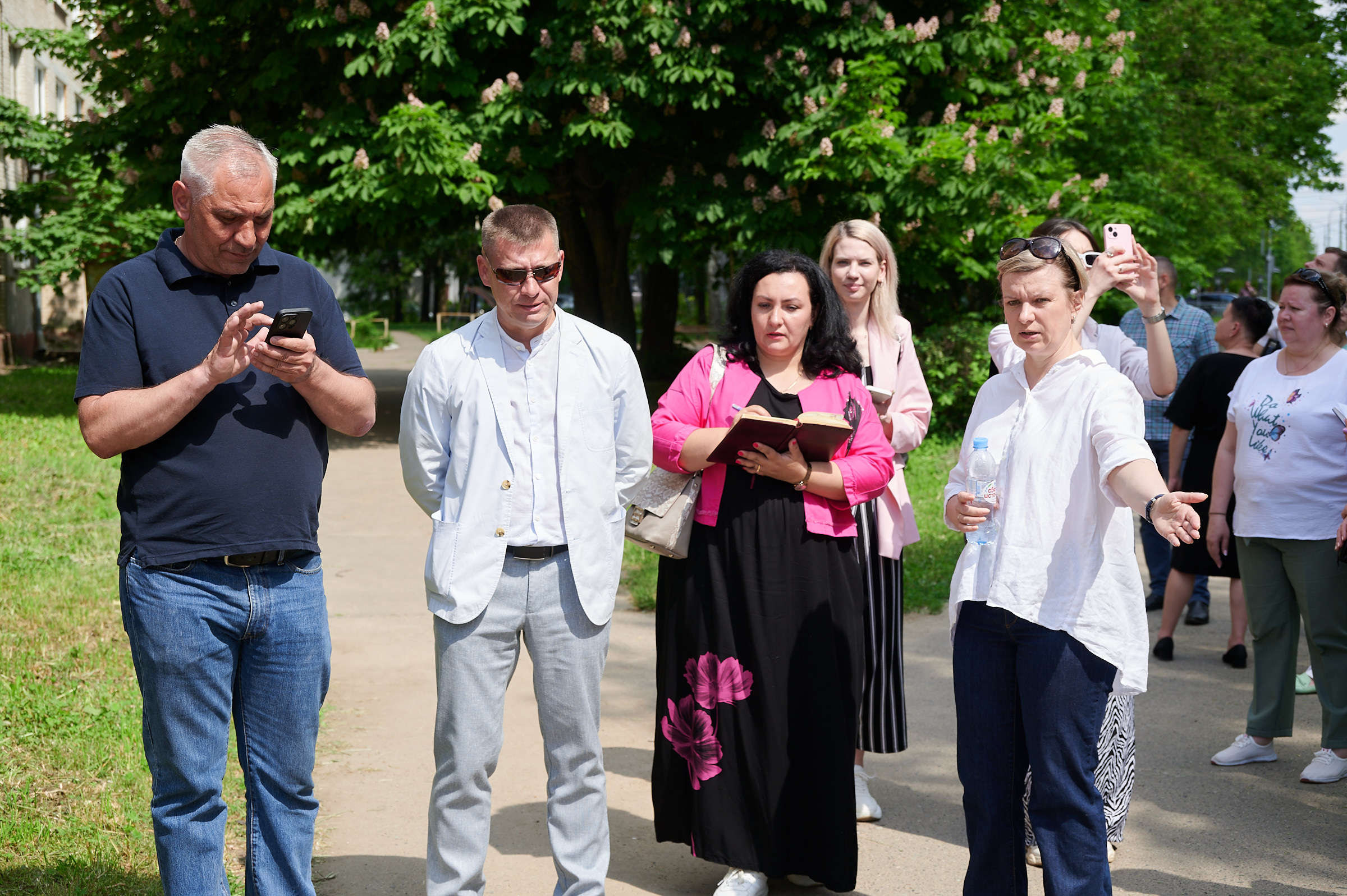 На совещании были осмотрены городские территории от ул. Курчатова, 55 до сквера по ул. Жолио-Кюри. В ходе комплексной проверки был выявлен ряд замечаний: несанкционированные вывески, самовольные пристройки, повреждения на покрытии пешеходного тротуара, аварийные деревья и неухоженные газоны.