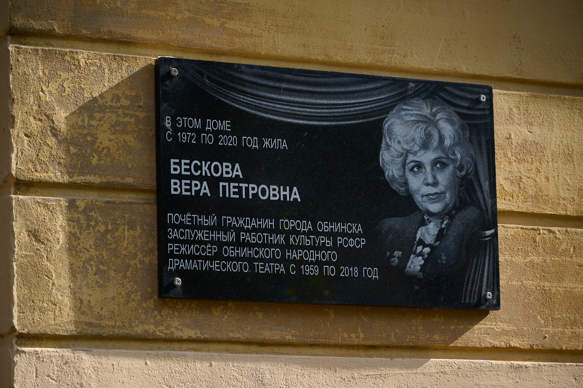 26 сентября состоялось торжественное открытие мемориальной доски памяти Почетного гражданина города Обнинска, режиссера Обнинского Народного драматического театра Веры Петровны Бесковой.