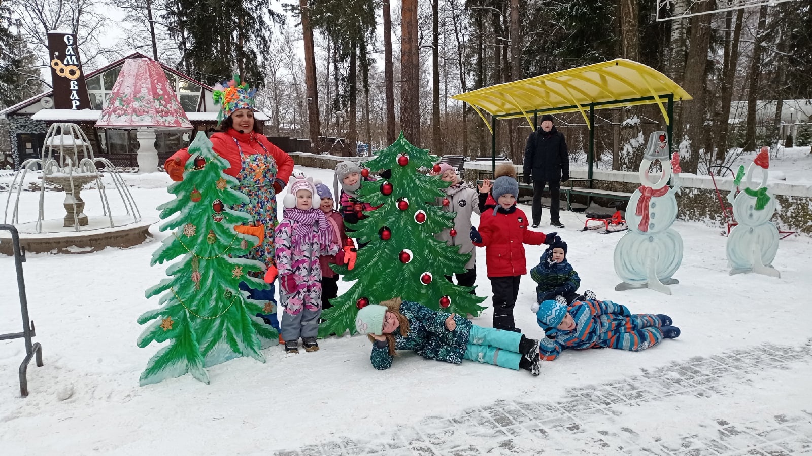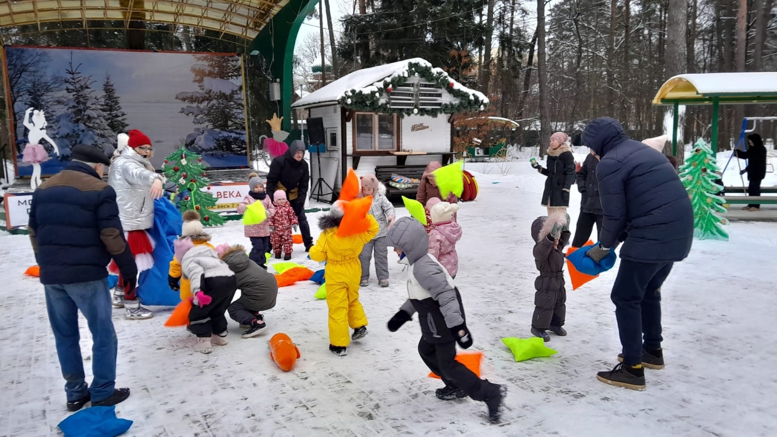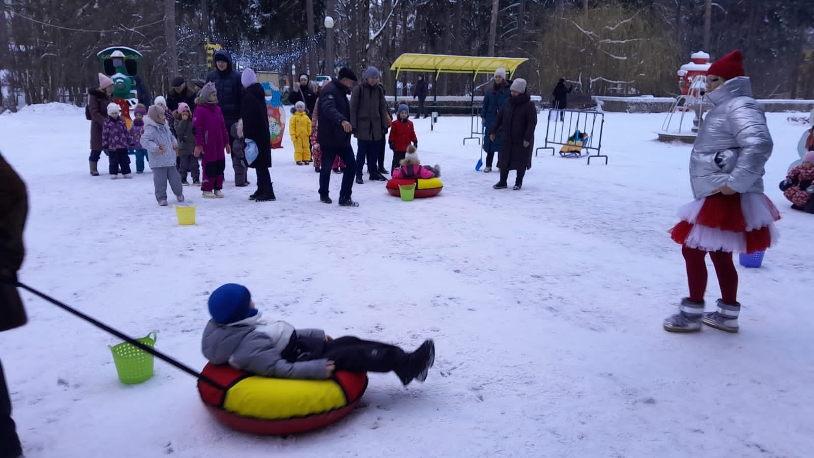 В Городском парке вместе с Красной Шапочкой ребята весело и дружно отметили начало зимы с играми, песнями и танцами. Они увлеченно снимали с ёлочки открытки с загадками и с удовольствием выполняли интересные задания, катались на ватрушках, соревновались в ловкости и танцевали, чтобы не замёрзнуть.