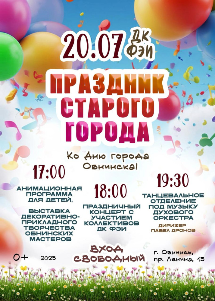 20 июля, 17:00 Праздник Старого города. Анимационная программа для детей. Выставка декоративно-прикладного творчества обнинских мастеров