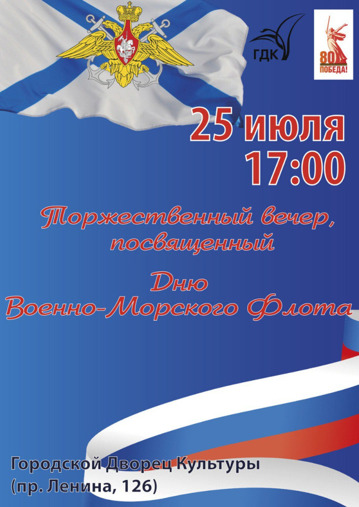 25 июля, 17:00 Торжественный вечер, посвящённый Дню ВМФ. Вход свободный