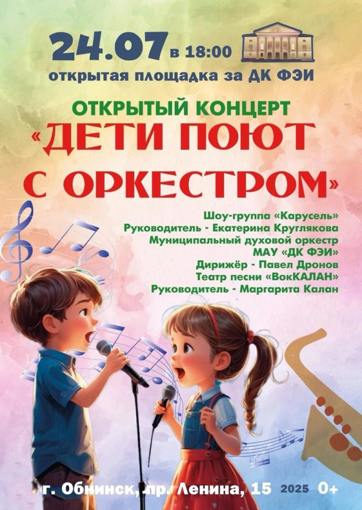 24 июля, 18:00 Открытый концерт «Дети поют с оркестром»