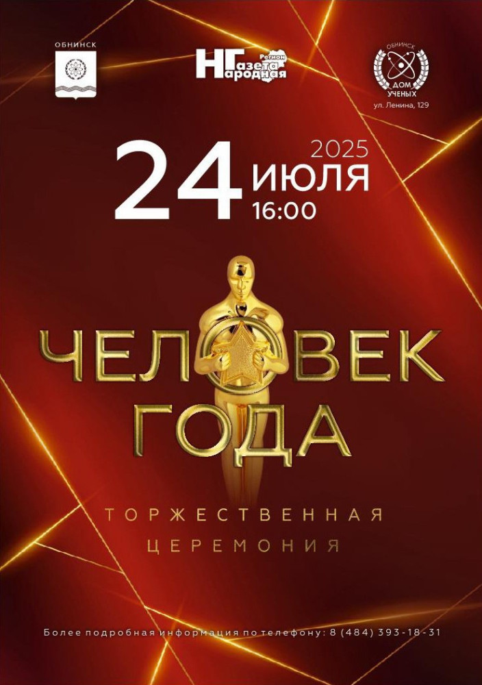 24 июля, 16:00 Торжественная церемония награждения Лауреатов и Номинантов городского конкурса «Человек года 2024». Вход по пригласительным билетам