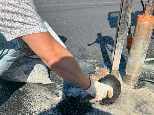 Отверстия, образованные в местах отбора керн, заделаны, целостность покрытия восстановлена.