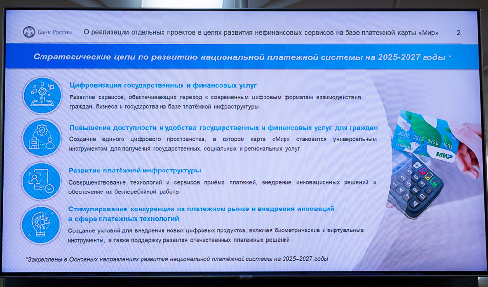 Еще одной темой доклада стал Проект прямых выплат. Он направлен на обеспечение прямого перечисления соцпособий, компенсаций, зарплат работников бюджетной сферы и иных выплат гражданам непосредственно на карты «Мир», минуя посредников — работодателей и иные организации. Такой механизм позволит исключить задержки и ошибки при перечислениях, сократить транзакционные издержки, а также повысить скорость и надёжность зачисления средств, поскольку прямые выплаты поступают в течение 3–5 дней без взимания комиссий.