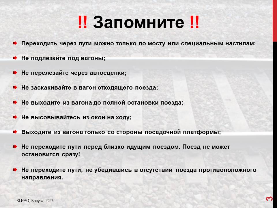 В этой связи в период с 1 по 5 декабря 2025 года региональное Управление МВД России совместно с Калужским Линейным отделом МВД России на транспорте организует на территории области межведомственную профилактическую акцию «Опасное увлечение». Её цель - снижение негативных последствий для здоровья и жизни несовершеннолетних, недопущение вовлечения подростков в экстремальные виды деятельности, «опасные» интернет-группы и неформальные молодёжные объединения.