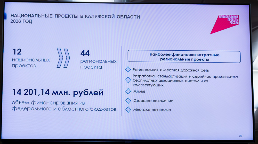 Владислав Шапша отметил, что объём финансирования проектов за 2025 год составил около 13 млрд рублей, общий уровень реализации в регионе превысил 99 %, по ключевым направлениям проекта «Инфраструктура для жизни» область вошла в число лидеров в стране. Губернатор также напомнил о том, что в конце того года на заседании Совета по стратегическому развитию и национальным проектам, которое прошло под председательством Президента страны, были определены ключевые задачи на предстоящий период. В числе приоритетных направлений — демография и поддержка семьи, сохранение экономического роста, технологическое развитие и повышение производительности труда.