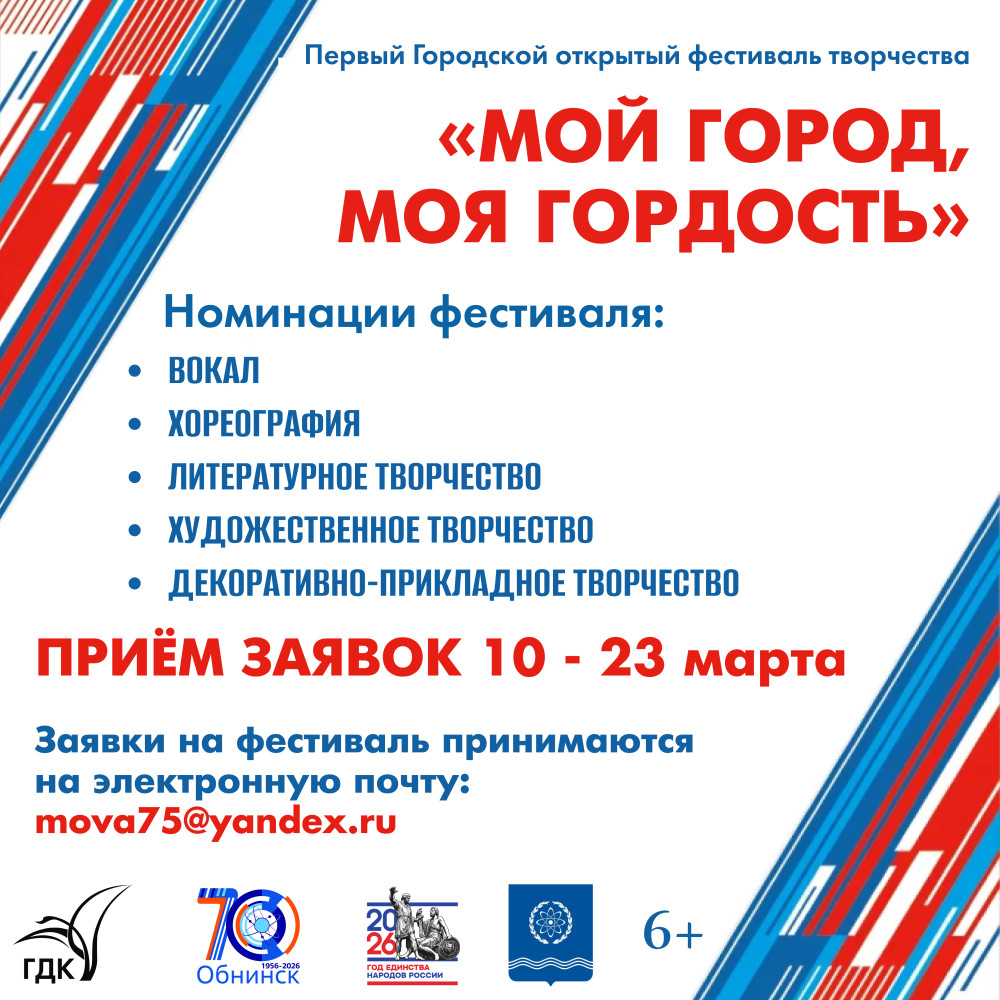 К участию в фестивале посвящённому 70-летию основания города Обнинска, приглашаются жители Наукограда и Калужской области без возрастных ограничений.