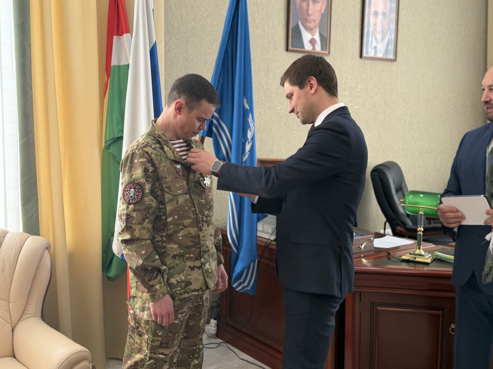 13 апреля глава города Стефан Перевалов и председатель Собрания города Обнинска Константин Пахоменко вручили медаль «Своих не бросаем» участнику специальной военной операции Роману Чикалову.