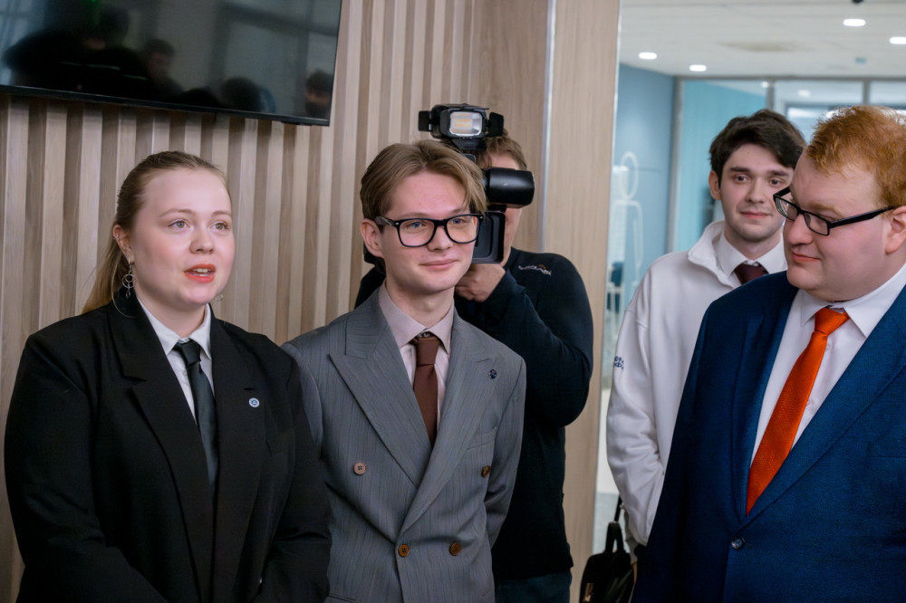 Владислав Шапша и Алексей Лихачёв побеседовали с представителями двух студенческих сообществ — Студентами «Росатома» и Мегасовета «Обнинск Тех». Молодые люди рассказали о своих проектах, практических стажировках на объектах «Росатома» и планах на будущее.