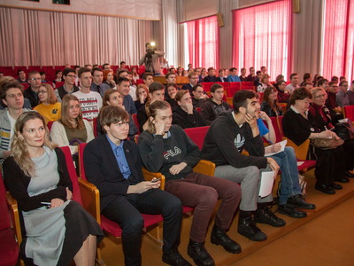Лекция «Ядерная физика: самое интересное из невидимого» собрала более 130 школьников 10-11 классов из четырех обнинских школ: №1 и №13, Физико-технической школы и Гимназии. Лекцию читал генеральный директор ГНЦ РФ - ФЭИ, доктор физико-математических наук, лауреат премии Правительства Российской Федерации в области науки и техники Андрей Говердовский.