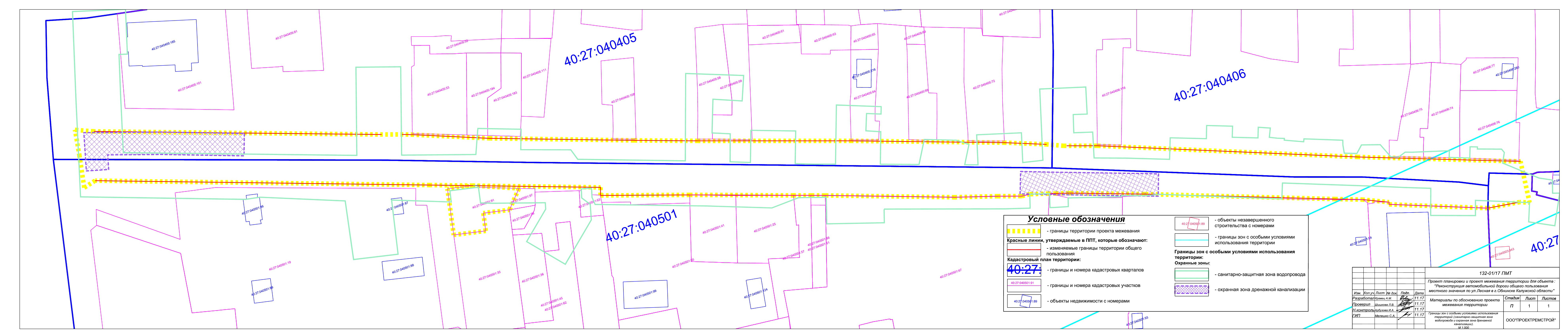 Проект межевания территории по объекту: «Реконструкция автомобильной дороги общего пользования местного значения по ул. Лесная в г. Обнинске Калужской области»Проект планировки территории технопарка «Обнинск» (площадки № 1 и № 2)Планировка и межевание территории транспортной развязки «Северный въезд в городе Обнинск» на км 101+750Документация по планировке и межеванию территории общественного центра города (Зона I)Внесение изменений в документацию по планировке и межеванию территории жилого района «Заовражье»Документация по планировке и межеванию территории объекта «Участок автомобильной дороги по улице Красных Зорь от ООО СПМ «Марк-4» до улицы Северная (I и II этапы) в городе Обнинске»Проект планировки и межевания территории объекта: «Строительство автодороги «Обнинск-Кабицыно-Лапшинка»Проект планировки и межевания территории линейного объекта: «Строительство канализации связи ООО «Макснет системы» «Обнинск-Белоусово» (1 этап) в городе Обнинске»Проект планировки и межевания территории по объекту: «Газопровод высокого давления от газовых сетей ГРС Обнинск-1 – МП «Теплоснабжение» до Обнинской ГТУ ТЭЦ № 1»Проект планировки и межевания территории объекта «Газопровод высокого давления 1 категории, расположенный по адресу ориентира: Калужская область, г. Обнинск, шоссе Киевское, земельный участок 7»Проект планировки незастроенной территории южной части 46 микрорайона г. ОбнинскаПроект планировки и межевания территории линейного объекта: «Строительство канализационного коллектора. Самотечный коллектор DN 1200 L = 3795 м и DN 1000 L = 122 м в г. Обнинске, Калужской области»Документация по планировке и межеванию территории привокзальной площади на улице Красных Зорь в городе ОбнинскеПроект планировки и межевания территории части кадастрового квартала 40:27:030602Проект планировки и межевания территории объекта «Северный водовод»Проект внесения изменений в документацию по планировке территории линейного объекта «Строительство канализационного коллектора. Самотечный коллектор DN 1200 L = 3795 м и DN 1000 L = 122 м в г. Обнинске, Калужской области»Проект внесения изменений в документацию по планировке территории «Жилая застройка в районе улиц Шацкого и Пионерского проезда»Проект планировки и межевания территории линейного объекта «Кольцевой водовод. Участок от ул. Любого до ул. Цветкова. Участок от пр. Маркса до ул. Королева. Участок по пр. Маркса до перекрестка с ул. Энгельса»Проект межевания территории гаражного назначения в границах гаражного кооператива «Скала»Документация по планировке территории квартала № 2, расположенной в границах элемента планировочной структуры территории жилого района ЗаовражьеПроект планировки и межевания территории в границах микрорайонов №№ 11, 14 города ОбнинскаПроект внесения изменений в документацию по планировке территории жилой застройки в границах 26 микрорайона города ОбнинскаДокументация по планировке территории жилой застройки в границах квартала № 10 жилого района «Заовражье»Документация по планировке территории жилой застройки в границах микрорайонов №№ 11, 14