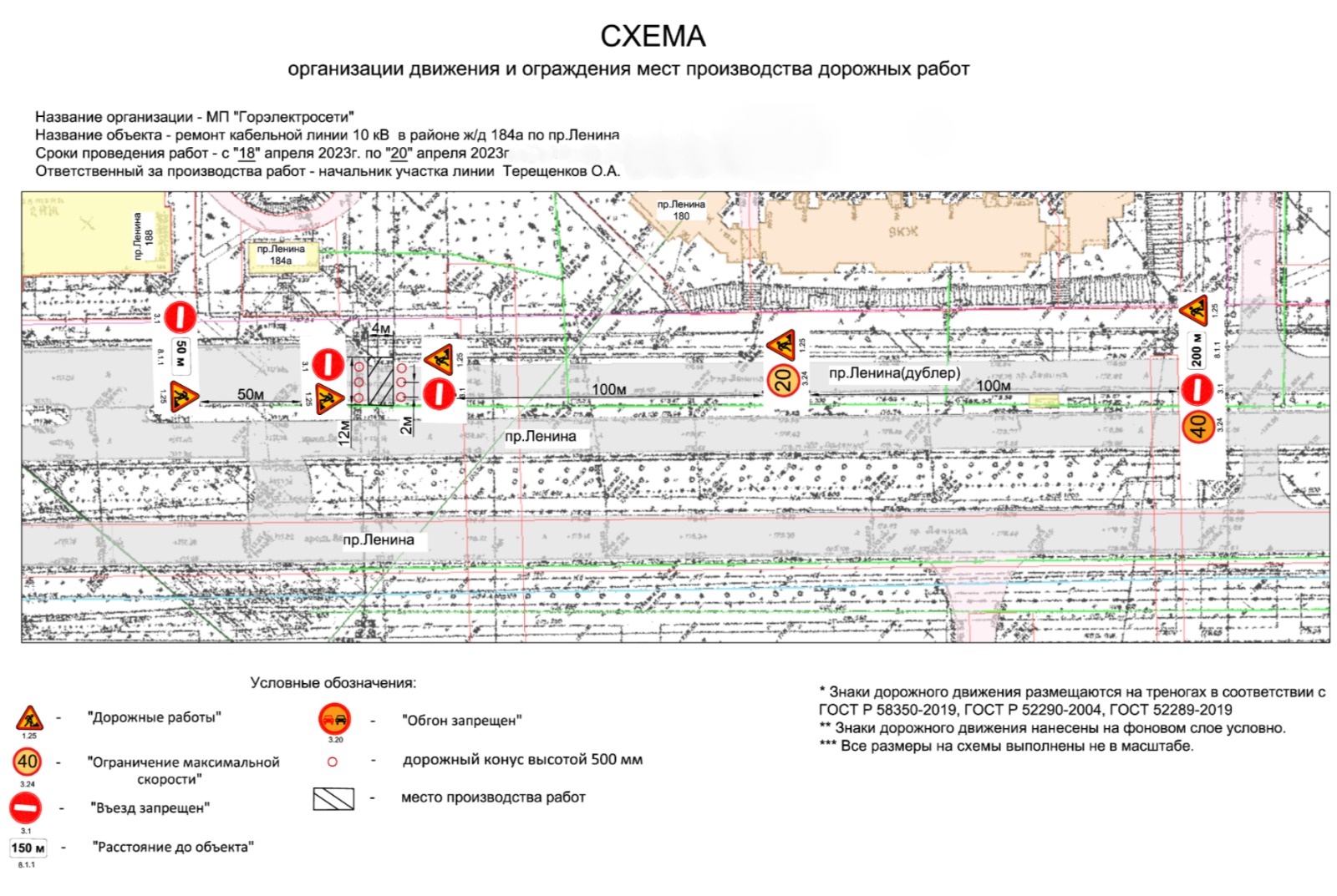 Схема организации движения по пр.Ленина в районе жилого дома №180 по пр.Ленина (скачать).
